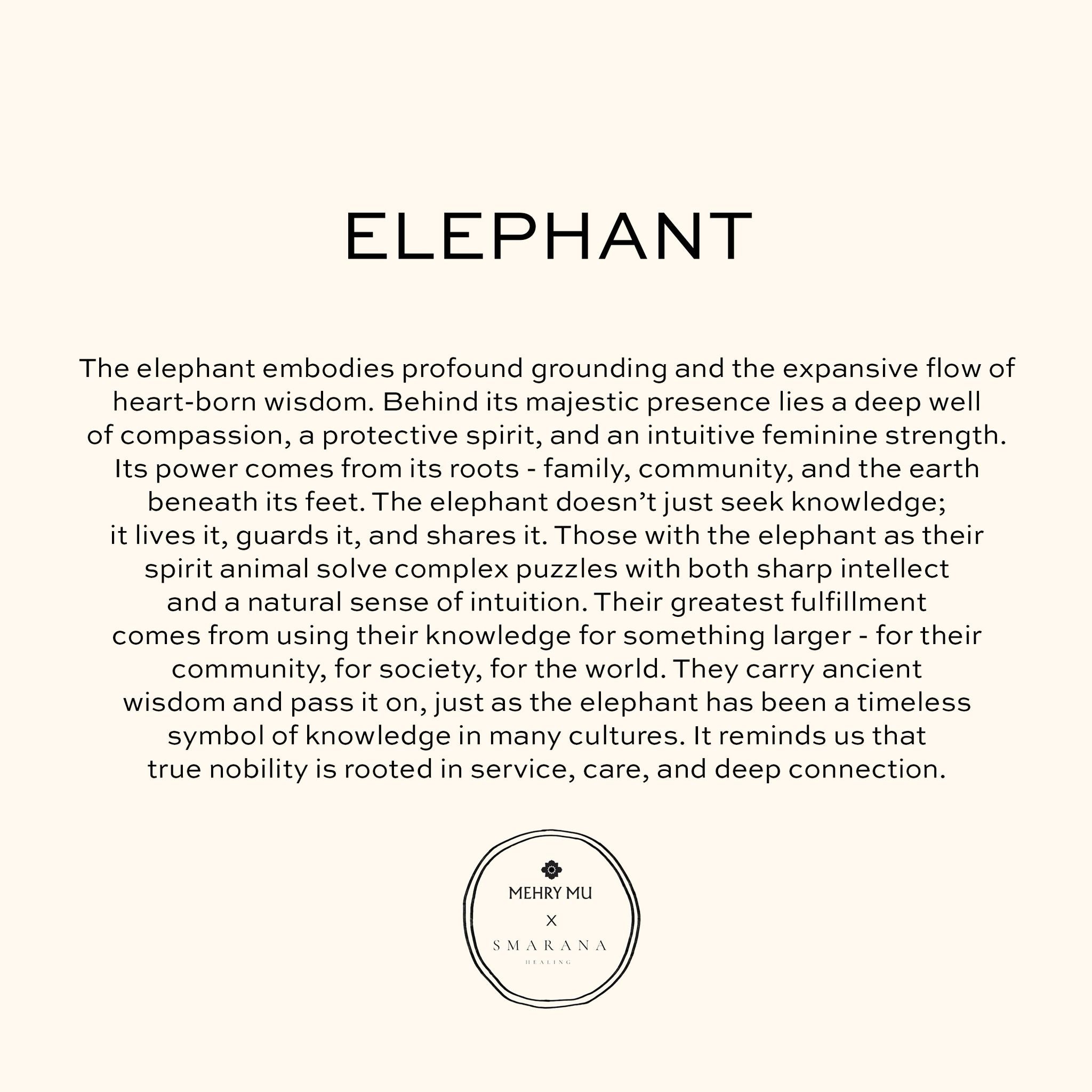 The elephant embodies profound grounding and the expansive flow of heart-born wisdom. Behind its majestic presence lies a deep well of compassion, a protective spirit, and an intuitive feminine strength. Its power comes from its roots — family, community, and the earth beneath its feet. The elephant doesn’t just seek knowledge; it lives it, guards it, and shares it. Those with the elephant as their spirit animal solve complex puzzles with both sharp intellect and a natural sense of intuition. Their greatest fulfillment comes from using their knowledge for something larger — for their community, for society, for the world. They carry ancient wisdom and pass it on, just as the elephant has been a timeless symbol of knowledge in many cultures. It reminds us that true nobility is rooted in service, care, and deep connection.