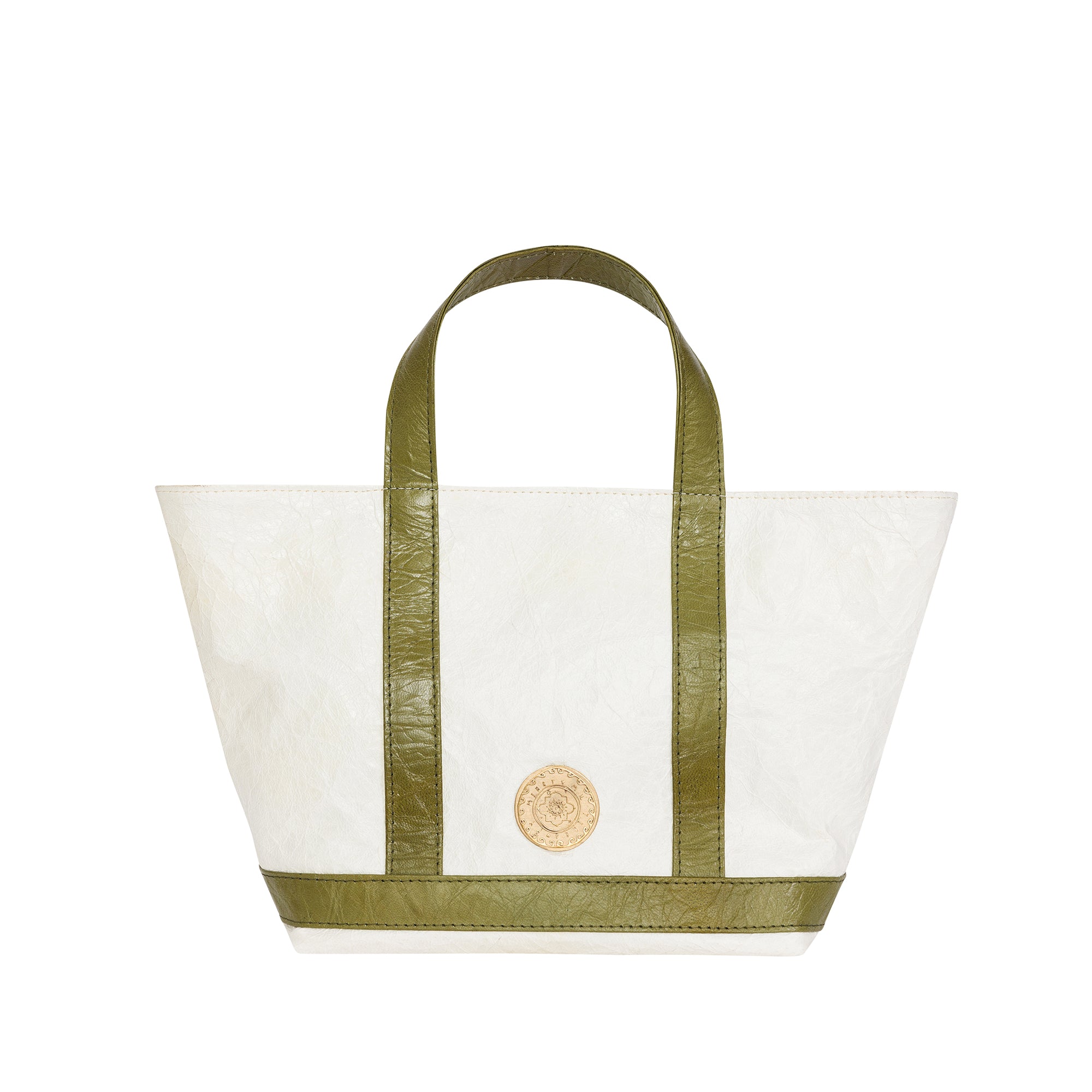 Ecru/green parchment leather