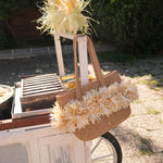 - El yapımı ponponlu el dokuması rafia çanta